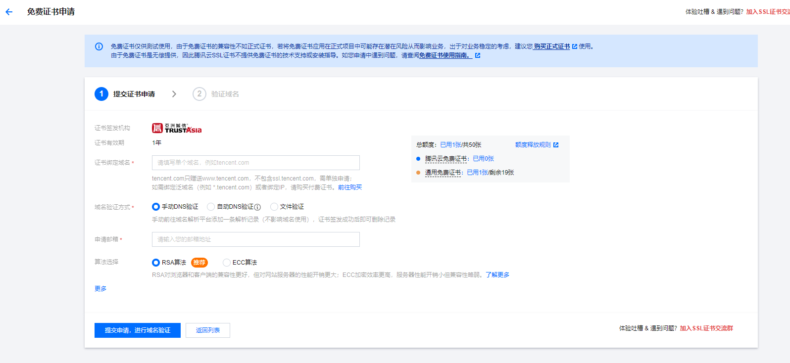 腾讯云ssl证书:https://console.cloud.tencent.com/ssl